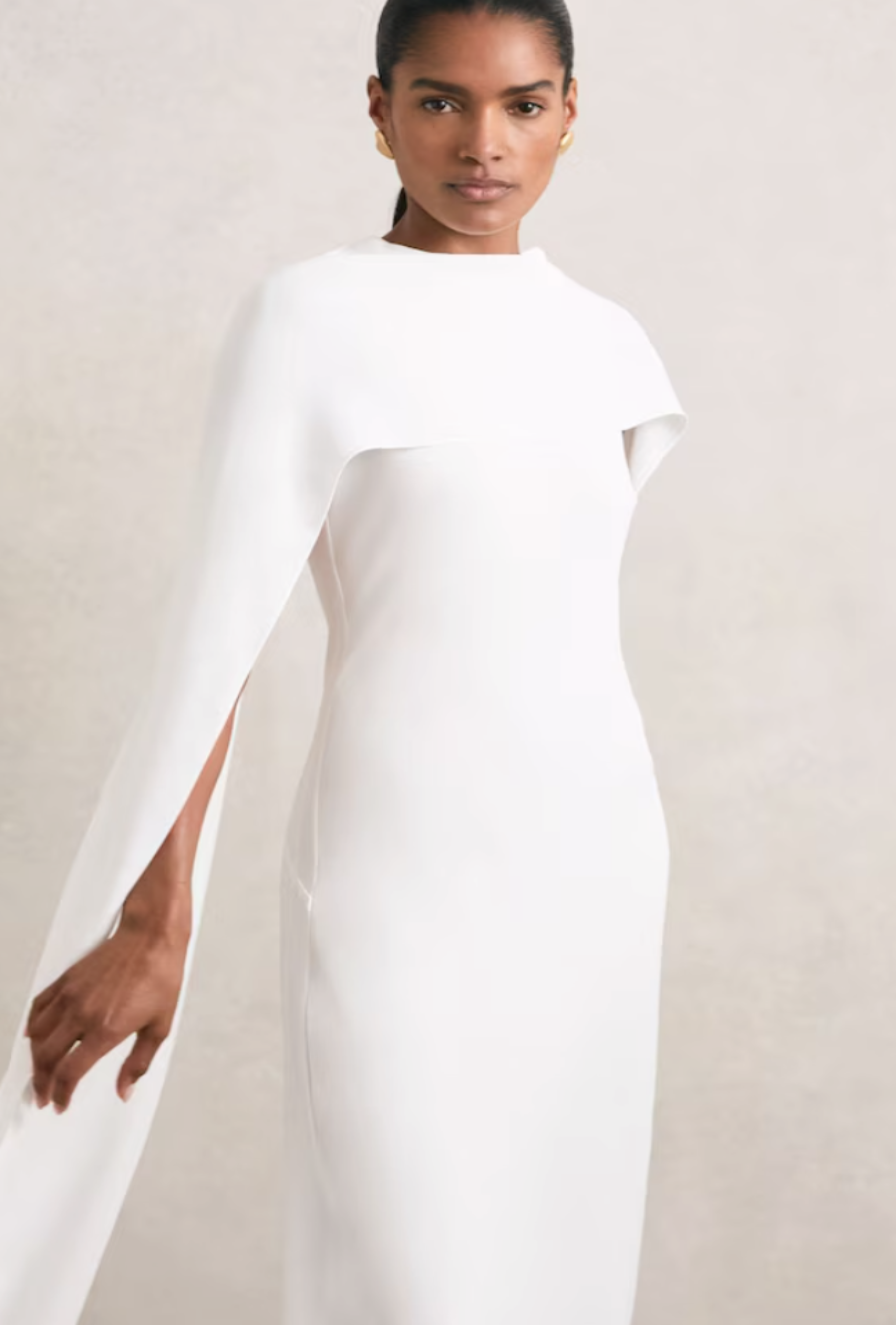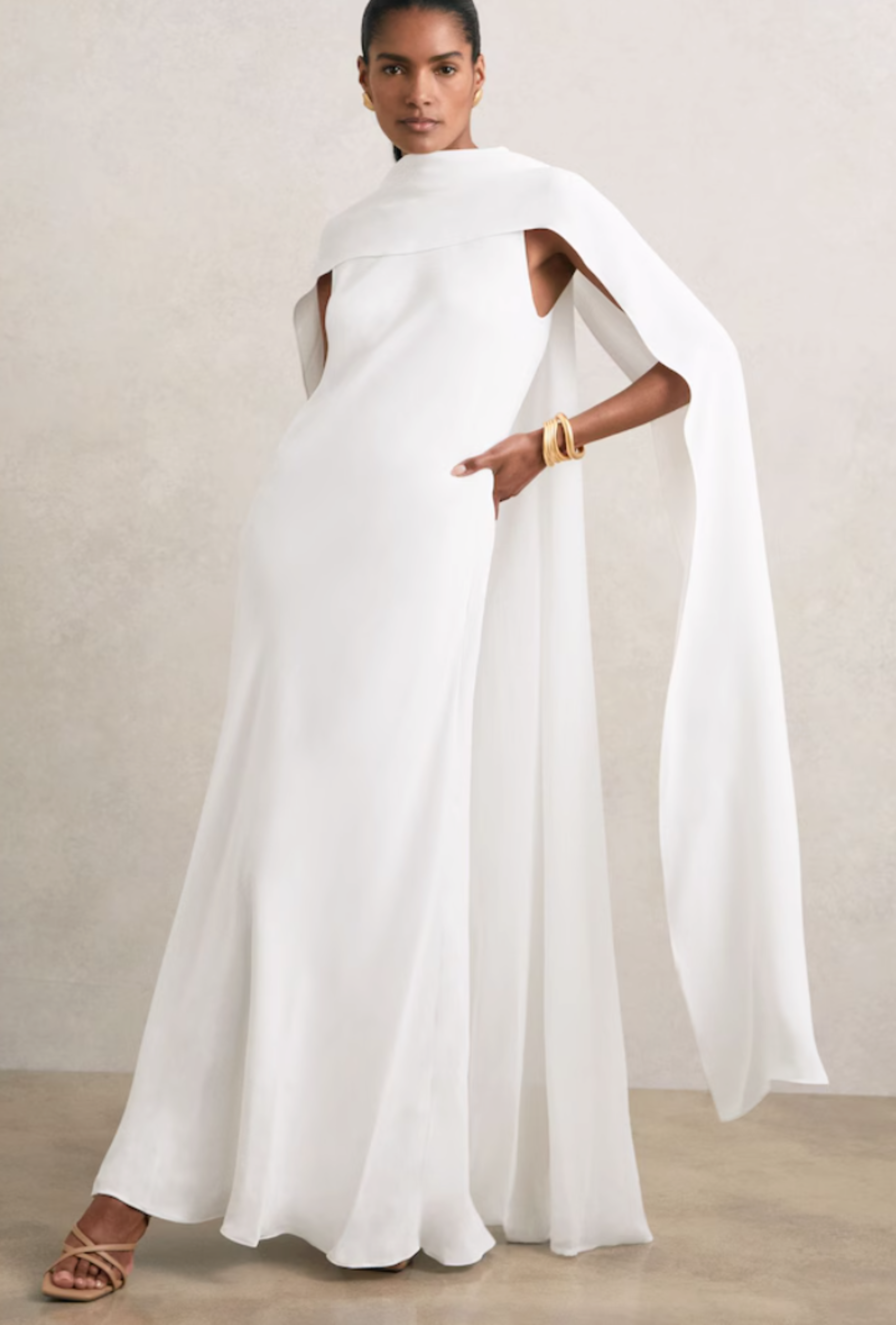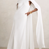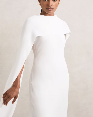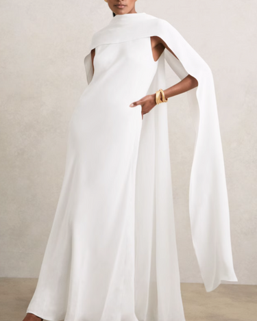 Greta Crepe Cape Maxi Dress in White